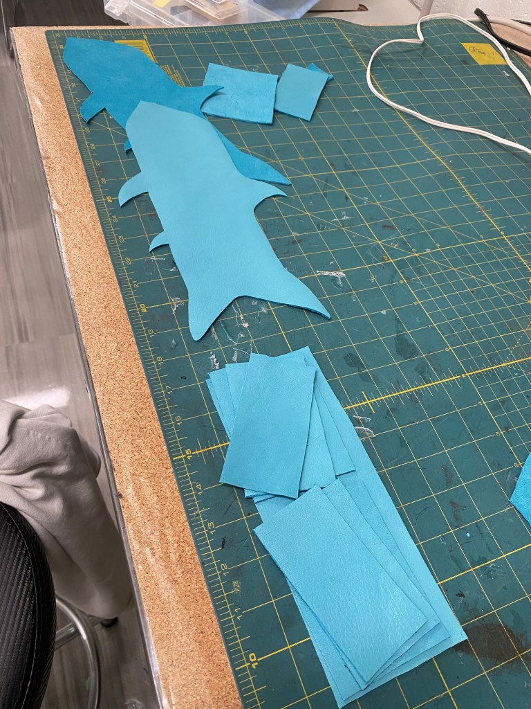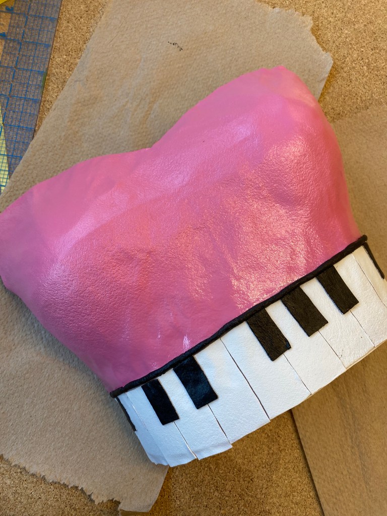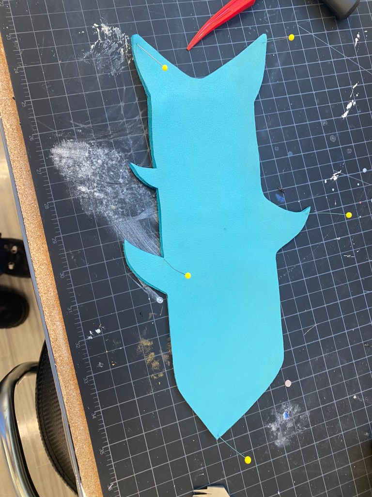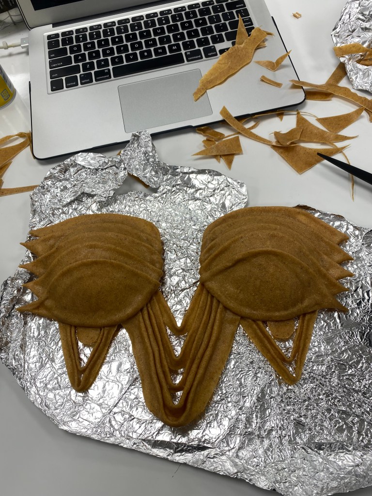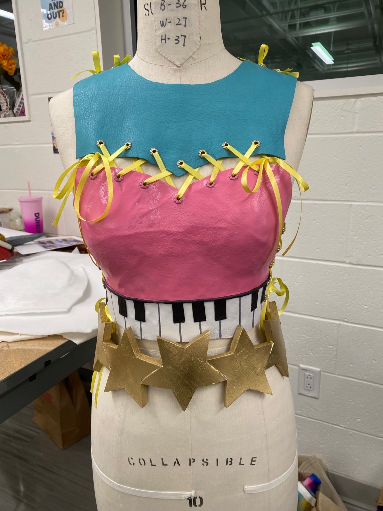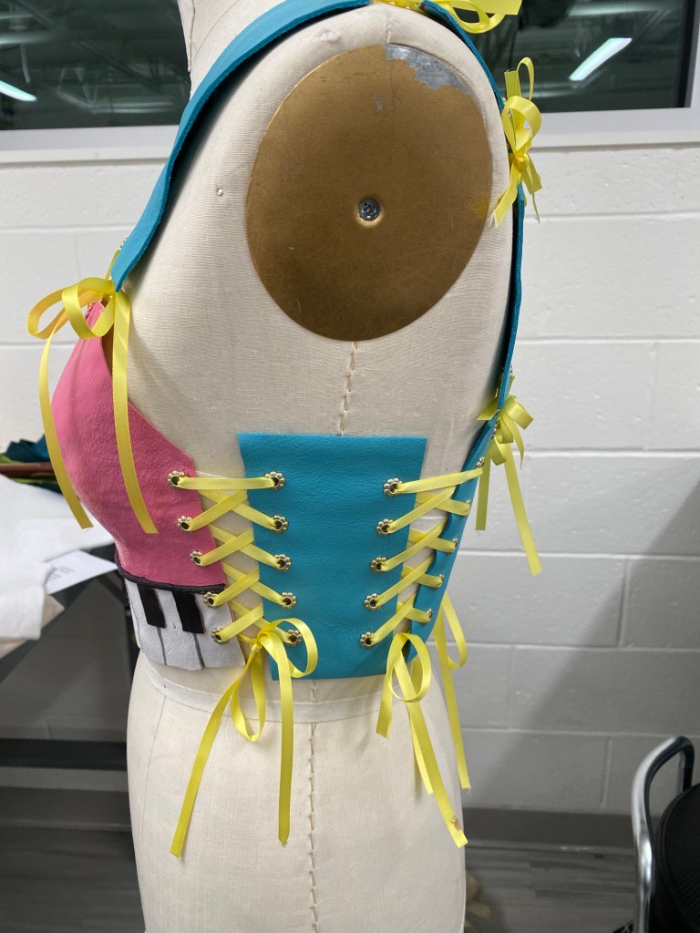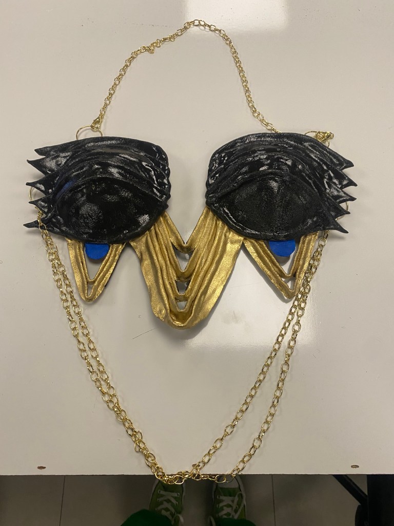 Face chest piece made from painted Worbla with adjustable gold hardware